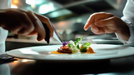 A food critic reviewing a dish in a restaurant with a smartphone and taking food photos for a blog, Modern lifestyle scene, Gastronomic style