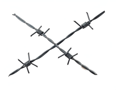 Barbed wire crossed in the shape of a cross on a transparent png background.