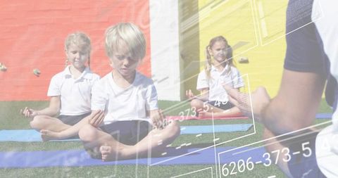Mindful child meditating outdoors on turf
