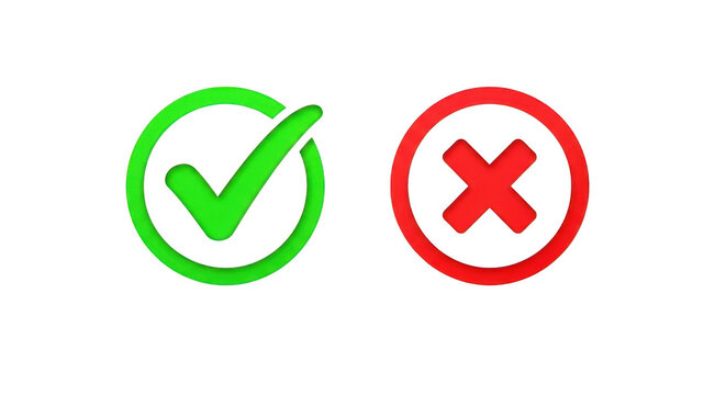 Green checkmark and red cross symbols for approval and rejection status transparent background