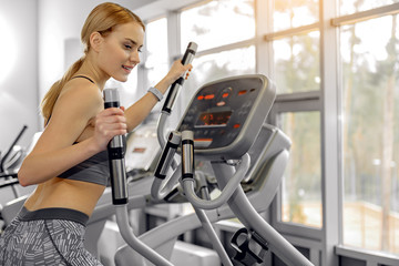 Sportgirl exercise on elliptical cross trainer at gym