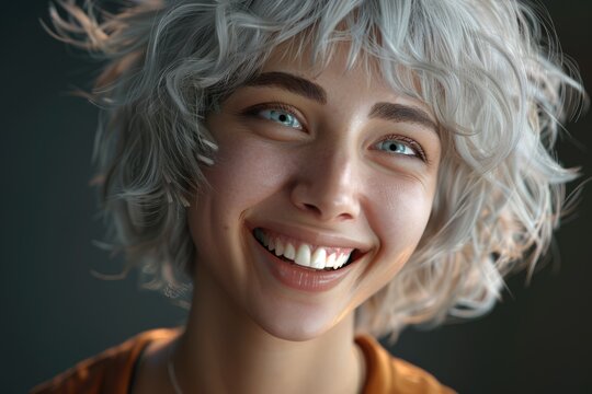 asian man with luxurious blonde hair and gorgeous make-up in white wall studio background passion look at camera