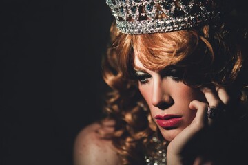 crossdressing  with make up studio portrait of asian young transgender or transvestite man, lipstick, fashionable, ideal as web banner or in social media, copy space for text