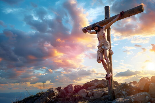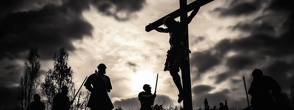 A Dramatic Scene of Jesus on the Cross at Golgotha, Crucifixion, Christian Faith, Jesus Christ, Holy Sacrifice, Redemption, Bible Story, Salvation, Biblical Event, Sacrifice for Humanity