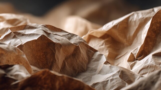 Highly textured, crumpled brown paper material rests upon a smooth, light surface
