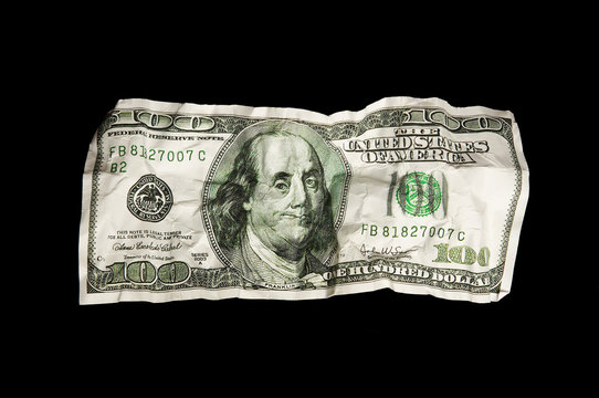 Money crushed one hundred dollar bills isolated on white background with clipping path