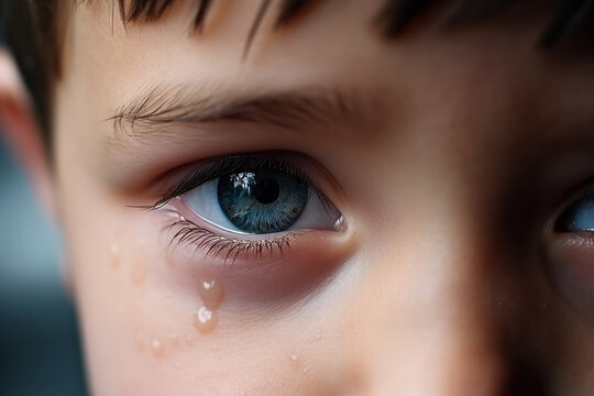 Close up of eye tear sad child girl crying eyes tearful face emotional expression sadness sorrow grief pain