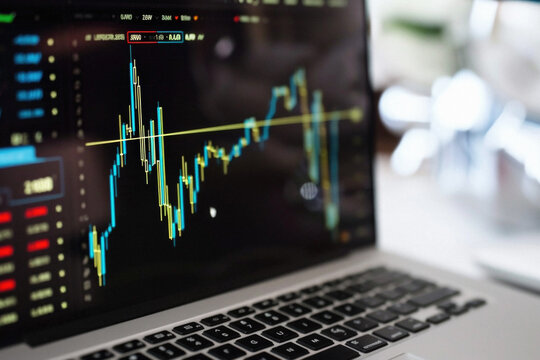 Stock market trading platform charts exchange graphs on pc computer screen. Financial technology online investment data digital money prices indexes crypto analysis and forecast background.