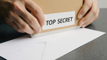 Hands showing a paper with top secret written on it emphasizing confidentiality
