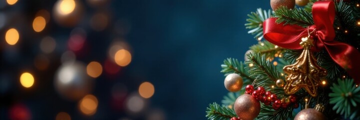 Festive red baubles adorning christmas tree with garland