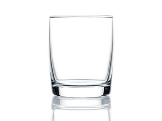 Set of elegant crystal glassware arranged on a white background, sharp reflections and bright highlights, minimalist and luxurious presentation, clean and modern style,