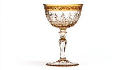 Exquisite ornate crystal goblet with intricate gold detailing, luxurious vintage glassware