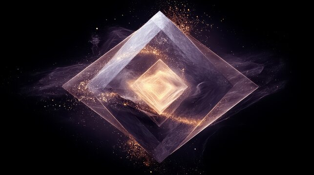 Radiant golden crystal abstract geometric fragments