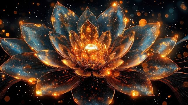 Iridescent crystal lotus flower with golden center