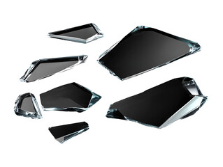 Shards of shattered glass. Pieces of broken glass isolated. Transparent background PNG. Pen tool cutout. Glass explosion.