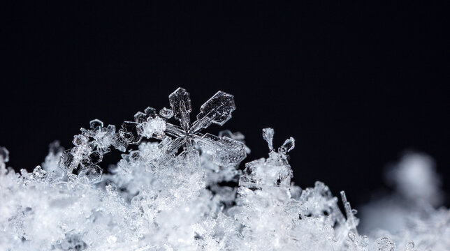 Glittering snow crystal in magical winter night scene