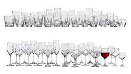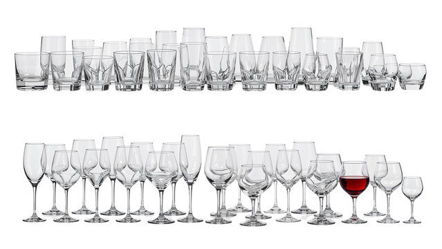 stemware. Crystal clear wine glass with elegant stemware on pure white background. bar promotions, beverage menus, designed for product packaging and bar promotions, used by account managers.