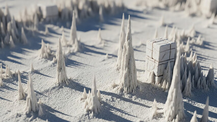 Ice Spire Landscape with Cube Monument