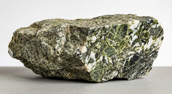 Albite-epidote amphibolite rock with green amphibole needles and white feldspar patches