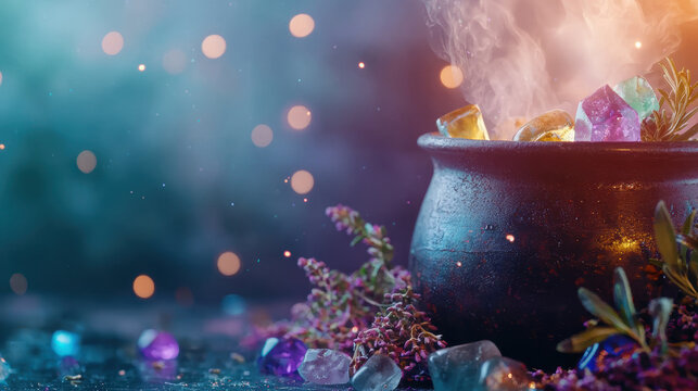 Healing chakra crystal grid therapy. Rituals with gemstones and aromatherapy for wellness, healing, meditation