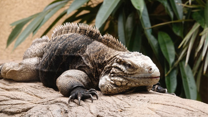 The Cuban rock iguana - Cuban ground iguana (Cyclura nubila) is resting in a vivarium