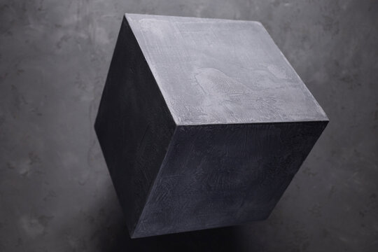 Concrete cube shape on floor background texture. Cement block as abstract concept