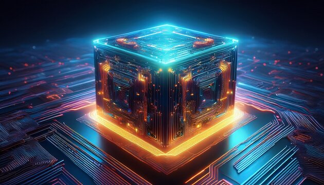 Abstract Geometric Interior with Cubic Structures and Central Light Source