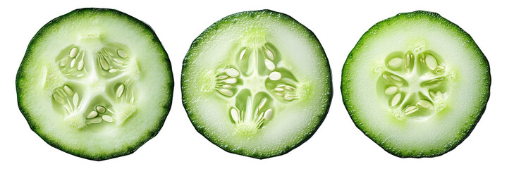 Close-up of fresh hydrating cucumber slices for culinary or skincare use