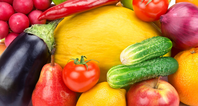 Fresh organic vegetables and fruits on a plate