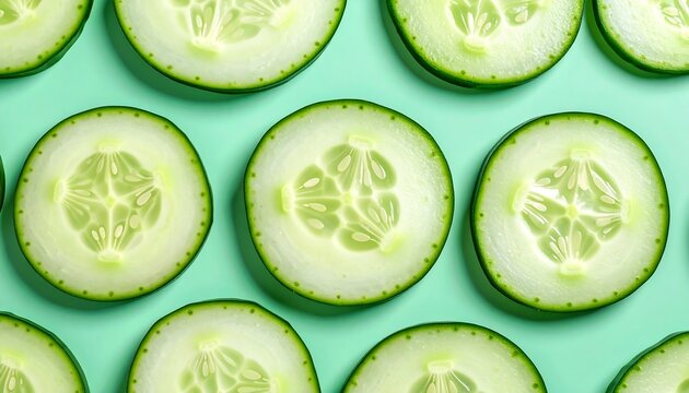 Freshly sliced cucumber rounds create a vibrant, healthy, and refreshing pattern perfect for culinary and wellness themes.