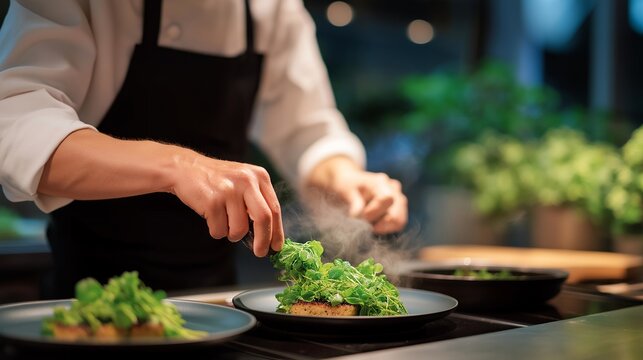 Chef perfecting culinary art in professional kitchen