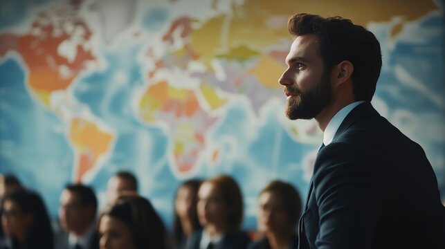 Businessman attends seminars in Cross-Cultural Management for international collaboration.