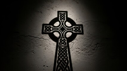 Stone Celtic cross with intricate knotwork, symbolizing eternity, unity, and cultural heritage.