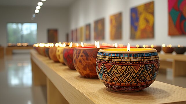 Kwanzaa cultural display with African-inspired crafts, colorful textiles, candles