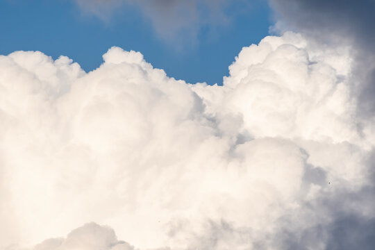heap of lighted cumulus cloud and blue sky above, sunset scenery
