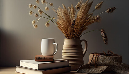 Vintage still life scene with books and tea cup