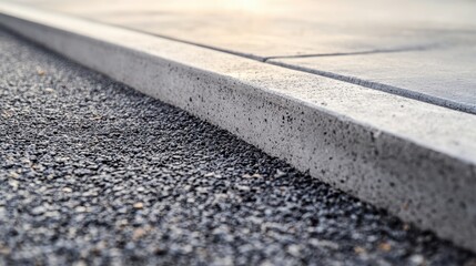 Close-Up View of Smooth Concrete Curb with Textured Asphalt Road Surface in Soft Morning Light Creating a Gentle Contrast for Urban Landscapes