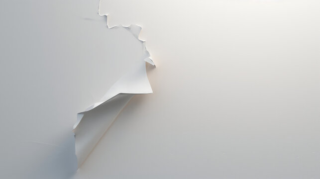 White sheet with curled corner casts soft shadow on gray surface