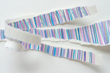 torn paper stripes with color pencil lines and curled ends