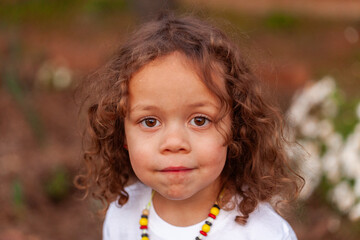 Portrait of curly haired Australian three year old child of aboriginal ethnicity