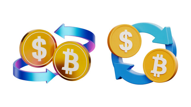 Bitcoin and Dollar Currency Exchange Crypto Trading 3D Render