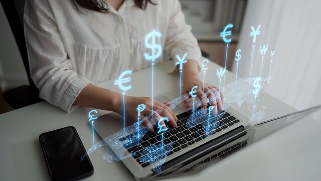 Digital finance and currency exchange concept on laptop