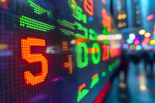 Vibrant Stock Market Display with Green and Red Numbers Financial Data Screen Showing Trends Trade and Investment : Generative AI