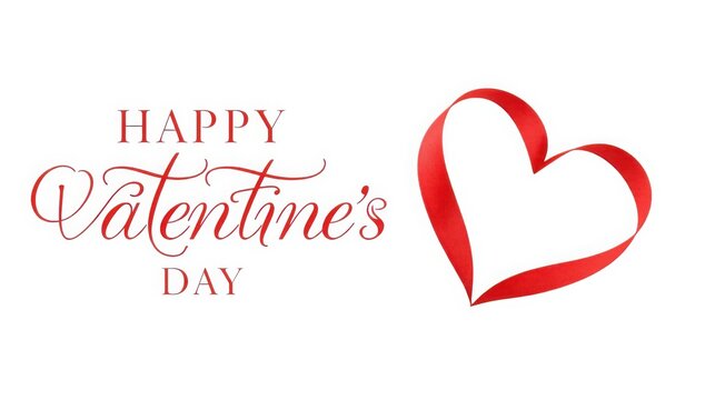 Happy valentines day text in elegant cursive font with red heart on white background for love and romance