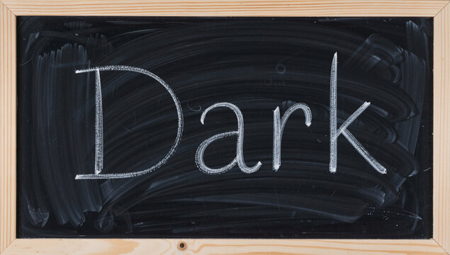 Chalkboard with Word "Dark" Written in Cursive