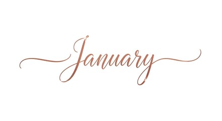 January written in an elegant cursive calligraphy font with a rose gold texture