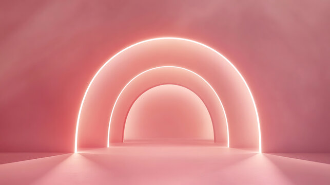 Floating radiant arcs on a muted pink background, Luminous curved lines creating a peaceful, ethereal design