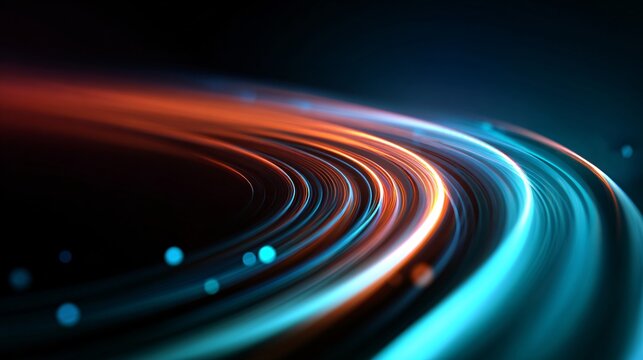 Abstract technology background with curved light lines bending in elegant neon arcs