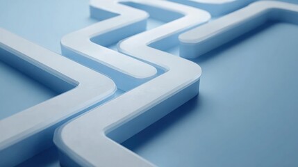 Close-up of a 3d rendering of a maze-like structure. the maze is made up of multiple white, curved lines that are arranged in a way that creates a sense of depth and dimension.