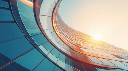 Low angle view of futuristic architecture, Skyscraper of office building with curve glass window.